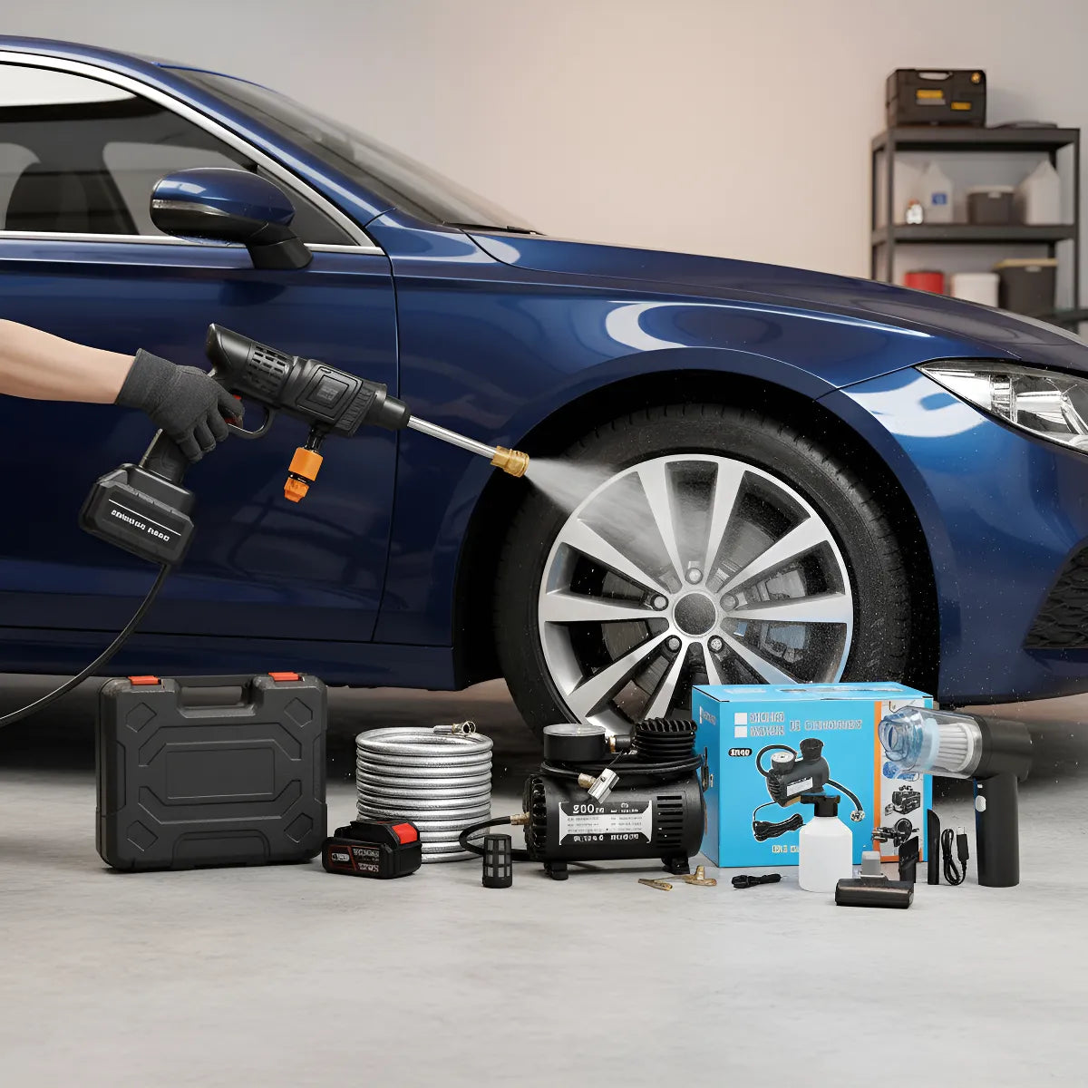 El JetForce Wash & Vac Pro es un combo diseñado para quienes buscan rendimiento superior, combinando tecnología, potencia y comodidad. Este kit ofrece una solución integral para limpiar profundamente superficies externas con agua a presión y eliminar suciedad interna con succión potente, todo en un solo paquete portátil.